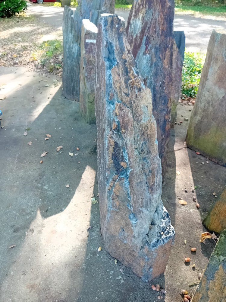 Deze grafsteen van Franse leisteen met een mooie robuste ruwe uitstraling word gevonden in Frankrijk heeft een mooie roestachtige kleur met zwarte binnenkant. Doordat de steen van de binnenzijde zwart is hebben wij hem ook met gepolijste accenten op voorraad. Ook deze gedenksteen is goed te combineren met cortenstaal.