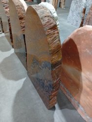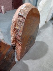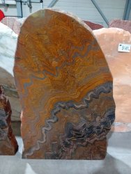 Deze gedenksteen van Gele Jaspis met een gepolijste voorkant en bekapte zijden en word gevonden in Brazili en heeft een mooie Bruine Kleur met daarin metaal achtige aders en hele bijzondere (catseye) katenogen.