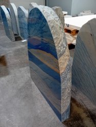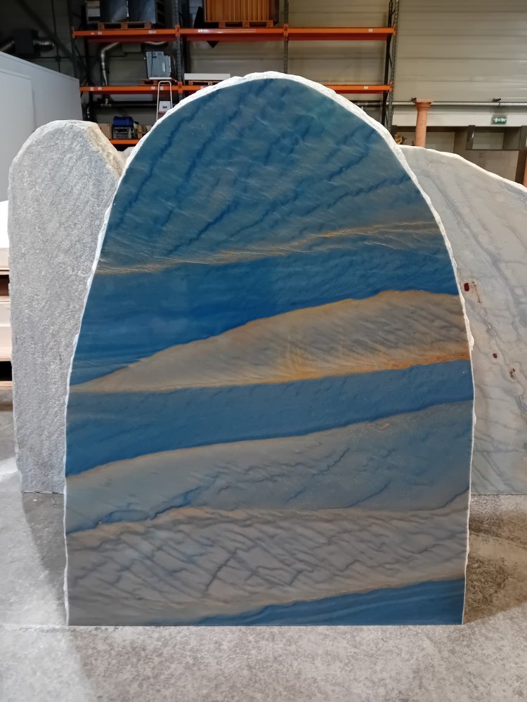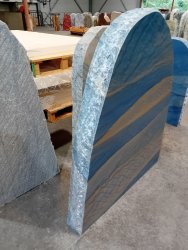 Deze gedenksteen van Azul macauba kwartsiet met een gepolijste voorkant en bekapte zijden word gevonden in Brazilië en heeft een mooie diepe blauw/witte adering. Deze gedenksteen is tevens verkrijgbaar met een gebrande voorzijde.