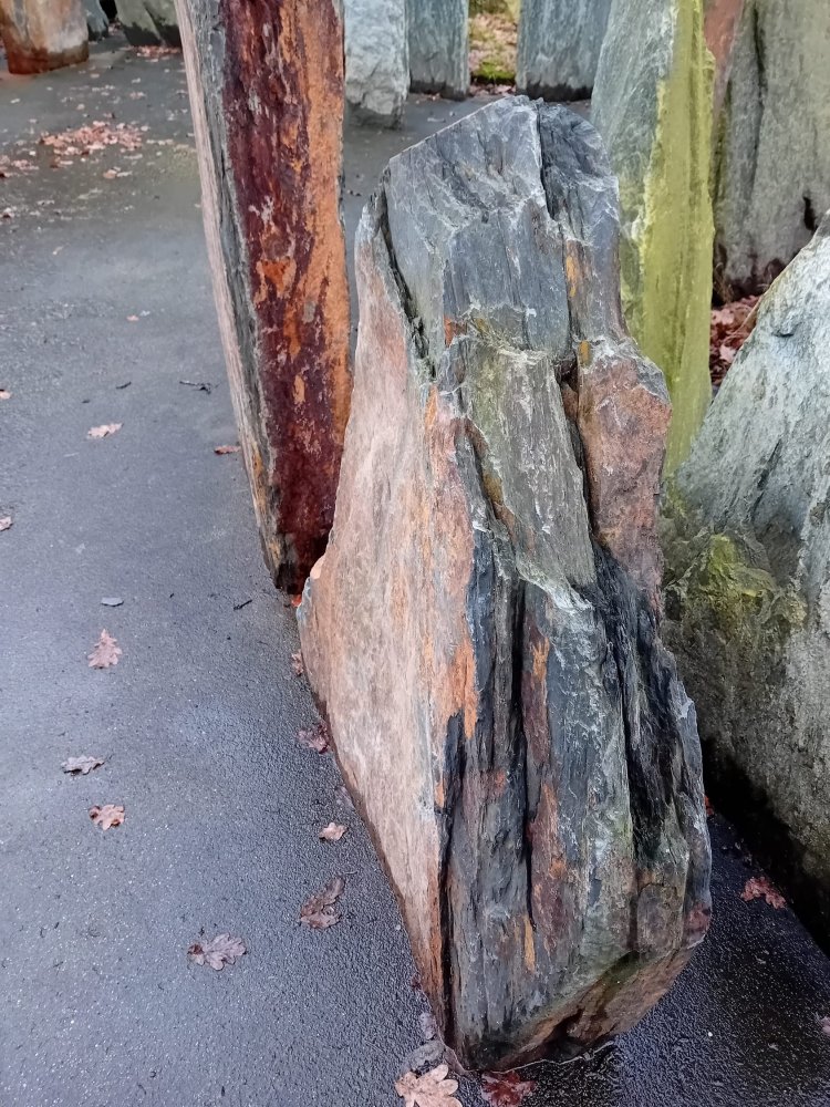 Deze grafsteen van Franse leisteen met een mooie robuste ruwe uitstraling word gevonden in Frankrijk heeft een mooie roestachtige kleur met zwarte binnenkant. Doordat de steen van de binnenzijde zwart is hebben wij hem ook met gepolijste accenten op voorraad. Ook deze gedenksteen is goed te combineren met cortenstaal.