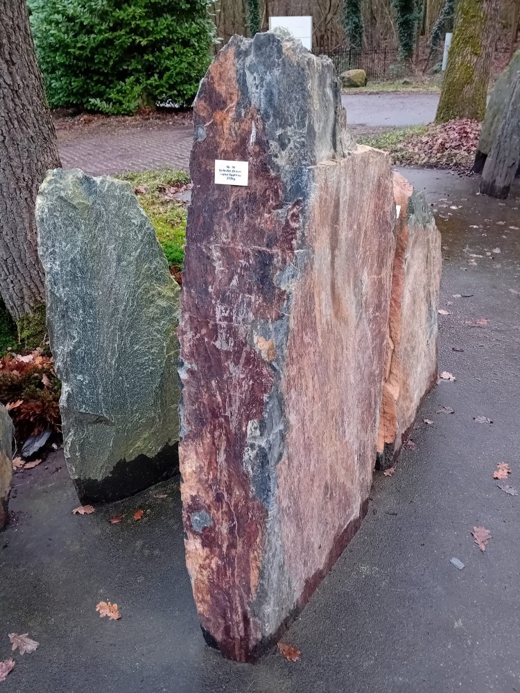 Deze grafsteen van Franse leisteen met een mooie robuste ruwe uitstraling word gevonden in Frankrijk heeft een mooie roestachtige kleur met zwarte binnenkant. Doordat de steen van de binnenzijde zwart is hebben wij hem ook met gepolijste accenten op voorraad. Ook deze gedenksteen is goed te combineren met cortenstaal.