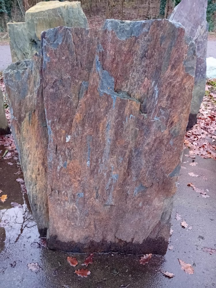 Deze grafsteen van Franse leisteen met een mooie robuste ruwe uitstraling word gevonden in Frankrijk heeft een mooie roestachtige kleur met zwarte binnenkant. Doordat de steen van de binnenzijde zwart is hebben wij hem ook met gepolijste accenten op voorraad. Ook deze gedenksteen is goed te combineren met cortenstaal.