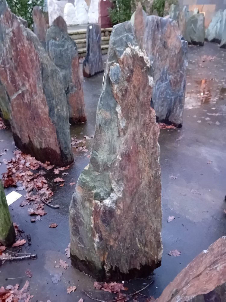 Deze grafsteen van Franse leisteen met een mooie robuste ruwe uitstraling word gevonden in Frankrijk heeft een mooie roestachtige kleur met zwarte binnenkant. Doordat de steen van de binnenzijde zwart is hebben wij hem ook met gepolijste accenten op voorraad. Ook deze gedenksteen is goed te combineren met cortenstaal.