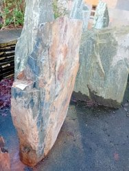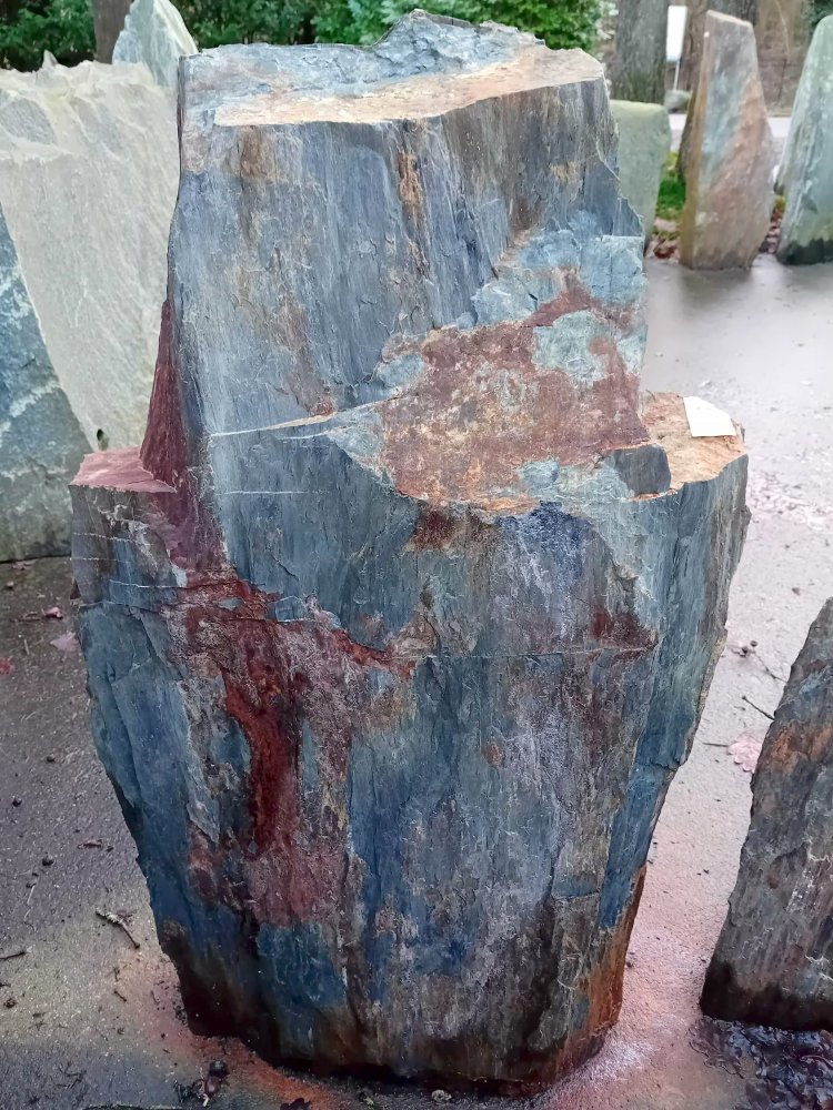 Deze grafsteen van Franse leisteen met een mooie robuste ruwe uitstraling word gevonden in Frankrijk heeft een mooie roestachtige kleur met zwarte binnenkant. Doordat de steen van de binnenzijde zwart is hebben wij hem ook met gepolijste accenten op voorraad. Ook deze gedenksteen is goed te combineren met cortenstaal.