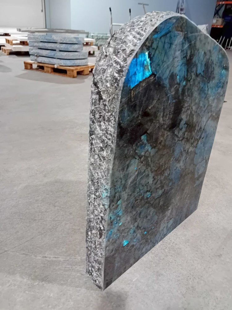Deze gedenksteen opaal is een labradoriet en is verkrijgbaar met een gepolijste voorkant en bekapte zijden. Deze steensoort word gevonden diep in rusland en heeft een zwart met grijze kleur en heeft opvallende zilver/blauwachtige spots waardoor deze steensoort erg opvalt met name in de zon.