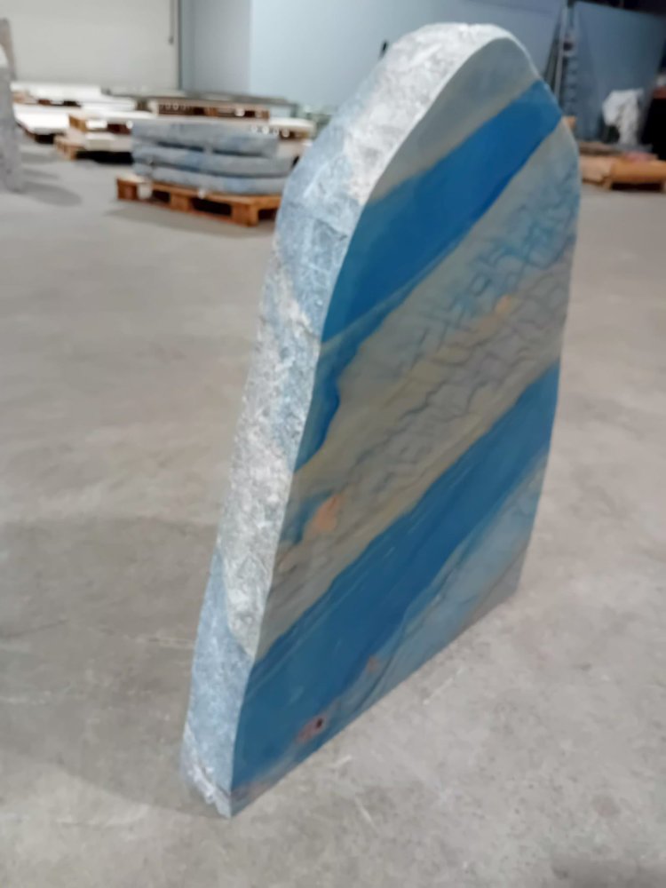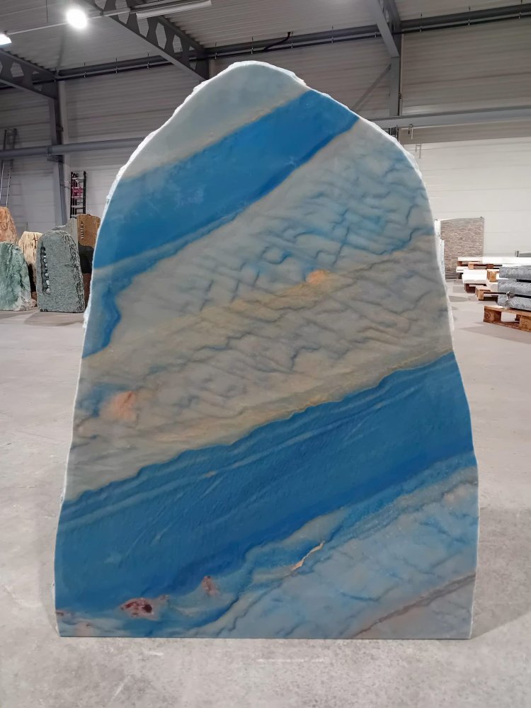 Deze gedenksteen van Azul macauba kwartsiet met een gepolijste voorkant en bekapte zijden word gevonden in Brazilië en heeft een mooie diepe blauw/witte adering. Deze gedenksteen is tevens verkrijgbaar met een gebrande voorzijde.