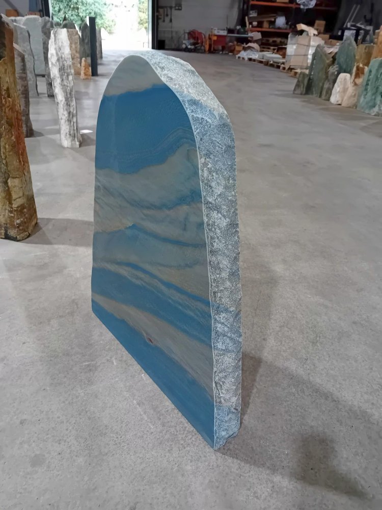 Deze gedenksteen van Azul macauba kwartsiet met een gepolijste voorkant en bekapte zijden word gevonden in Brazilië en heeft een mooie diepe blauw/witte adering. Deze gedenksteen is tevens verkrijgbaar met een gebrande voorzijde.